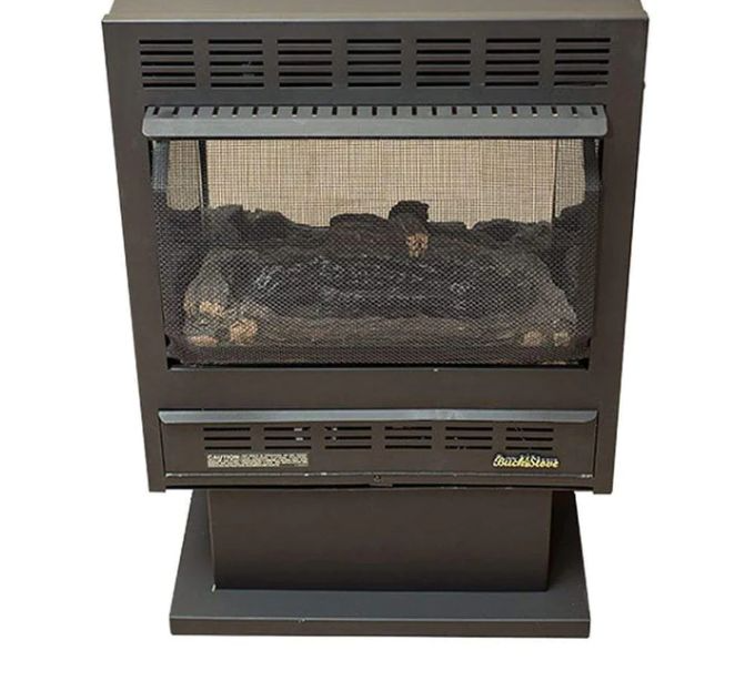 Buck Stove vent free wall mount units feature a realistic log set with a natural looking flame. These units are standard as a wall mount but can be used as a freestanding unit with an optional pedestal. Buck 1127 wall heaters can also be used freestanding with a wooden mantel for a natural fireplace look. The Buck Stove Model 1127 Vent Free Gas stove provides up to 25,000 BTU's and can be wall mounted or installed on a pedestal or in a fireplace mantel. The Model 1127 features a factory installed variable speed blower system. This heater has a thermostat sensing bulb and will modulate flame up and down on demand of heat desired. Several setup options are available including: Wall Mount, Freestanding Pedestal, and Mantel Install.