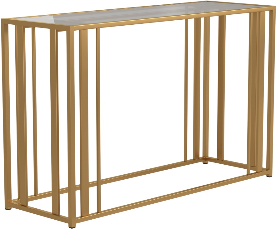 Create a well-styled living room that brims with modern appeal. This contemporary coffee table flaunts a unique design that stands out in any space. The base is beautifully crafted with crisp, clean lines of electroplated metal. A magnificent, matte brass finish adds an edge of elegant allure. The rectangular tabletop is made of clear tempered glass for exceptional quality and style.