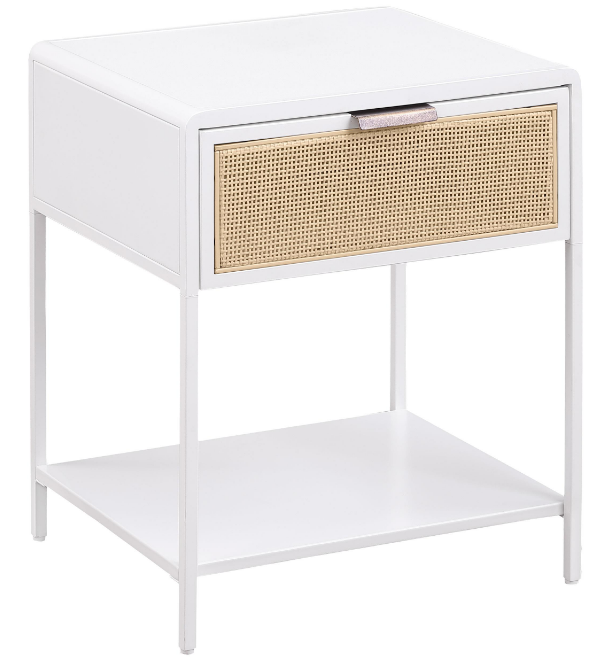 One drawer with radio weave resin cane front adds texture and style