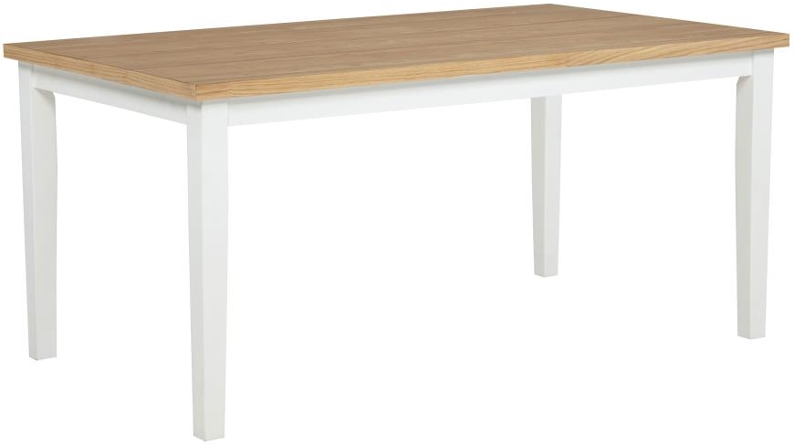 Rectangular dining table in light ash and white offers relaxed style with a clean two-tone design