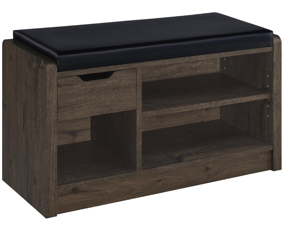 Make your entryway or garage both functional and stylish with this versatile storage bench, designed to keep your space organized. Featuring a foam cushion upholstered in sleek black faux leather, this bench offers a comfortable seat while you put on or take off your shoes.Read More