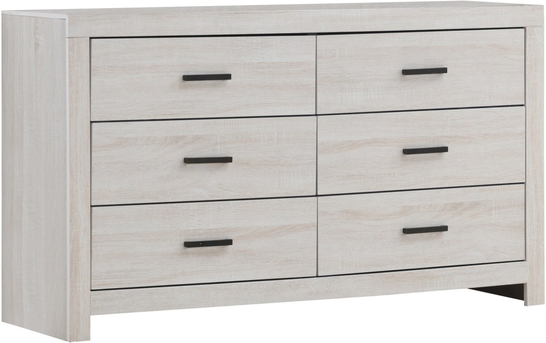 Bold and contemporary, this wooden dresser freshens up a bedroom with cool, modern appeal. This piece is crafted with a 3D paper veneer for added quality and easy maintenance. Dark bronze handles top each drawer to add a classic element to its modern look. The deep storage drawers easily accommodate a wide variety of wardrobe essentials. This beautiful dresser is available in multiple finishes to easily blend with any palette.