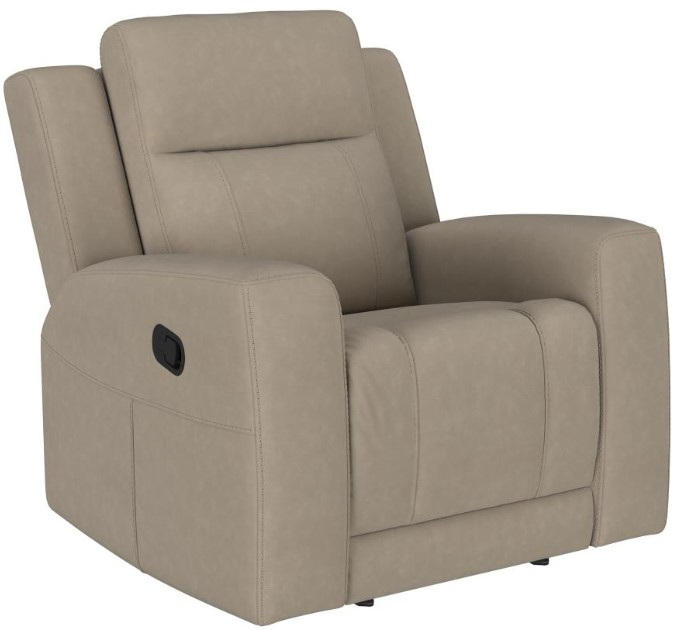 The Coaster® Brentwood Taupe Manual Recliner features soft taupe fabric and a manual reclining function. Its plush cushions and supportive design provide comfort and relaxation, making it a great addition to any living space. Stylish and functional, it complements a variety of home décor styles.Read More