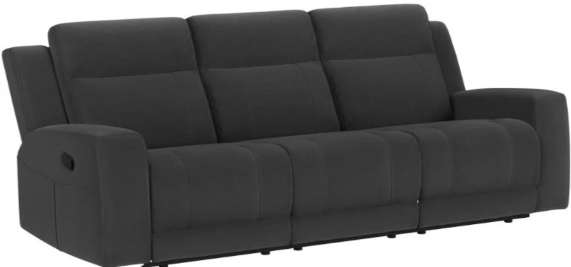Sofa features two recliners operated with manual recline levers on the outside of the arms