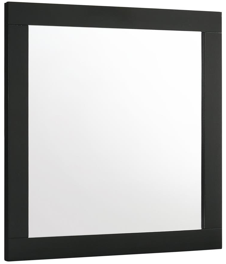 Modern luxury with a minimalist look offers a perfect fit for updated bedrooms as the dresser mirror completes an ensemble with utility and beauty in a sleek master suite or guest bedroom. Wood and wood products construct a mirror frame with clean lines and a medium-thick border.Read More