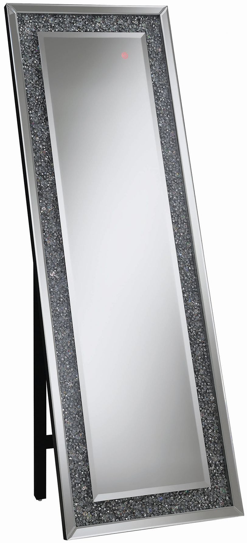 Bring a cool vibrancy to your home when you add this standing mirror. It features MDF and mirror construction that brightens up a bedroom or makes for a unique addition to the foyer. The silver finish is embellished with crystal accents that give the mirror a splash of panache. Yet, the LED lighting around frame really enlivens the home and sets it apart from other mirrors. You'll always be sure you look good with this stunning standing mirror.