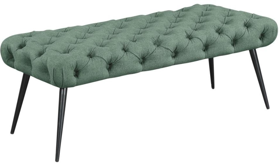 The Coaster® Ella Teal Upholstered Bench showcases a vibrant black and teal fabric, adding a pop of color and modern flair to any space. With its comfortable padded seat and sturdy construction, it combines style and practicality, perfect for any room.Read More