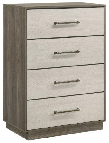 Four-drawer chest with a contemporary two-tone melamine design