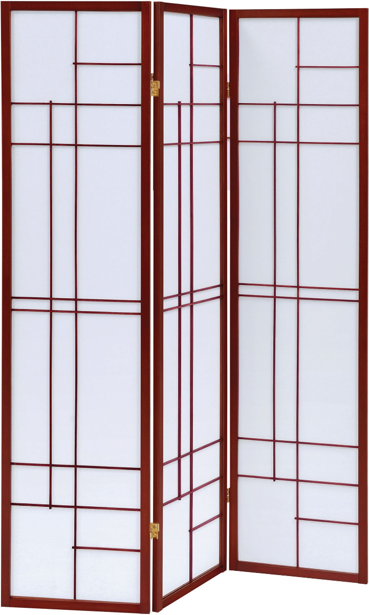 Brownish red finish frames and trim add a warm touch. Enjoy an enticing optical illusion and a classic decor staple.