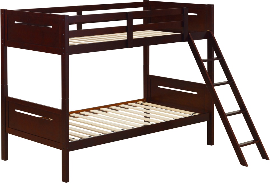 Space-saving with a clean and minimalist aesthetic, this youth bunk bed features a modern style frame that lends a masculine vibe. Perfect for making more floor space, this bunk bed offers a square design with a straight headboard and footboard, each with a slim notched out space.Read More