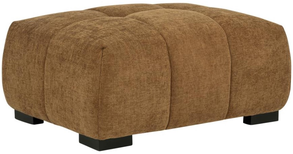 Ottoman in amber fabric showcases sculptural volume and plush vertical grid tufting