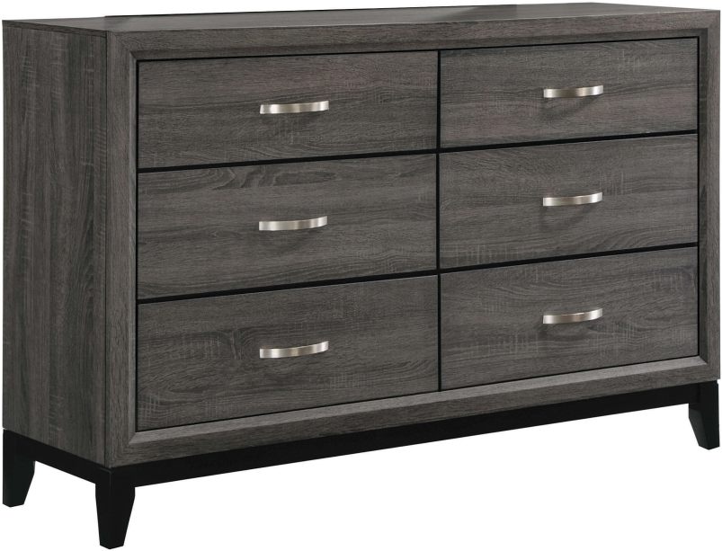 Featuring color blocking, this grey six-drawer dresser is a contemporary take on mid-century modern design. The body showcases a sophisticated, exposed wood grain constructed of oak.Read More