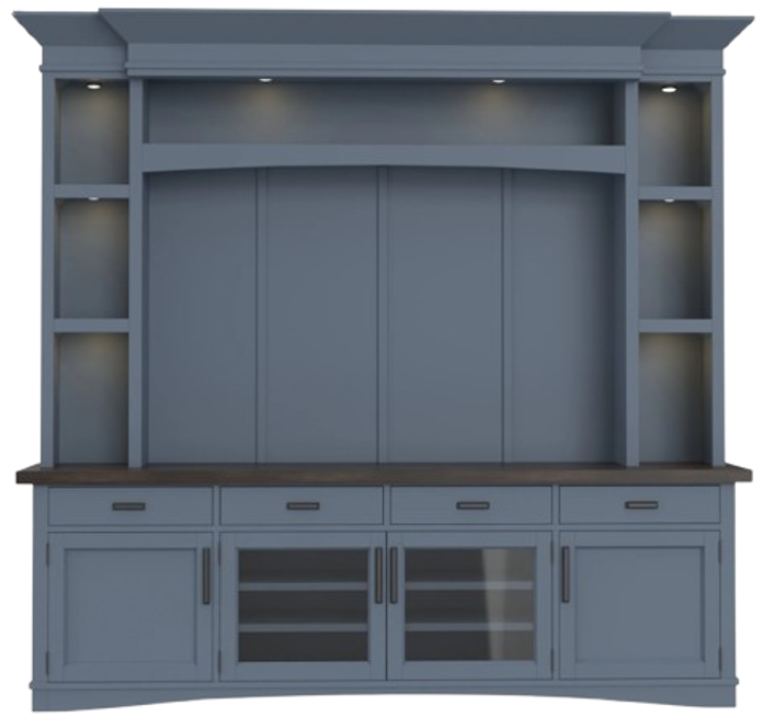 Surround your television and components in classic style with this 92-inch TV Console with Hutch and back panel. Simple yet elegant, its classic silhouette is finished in a Denim blue with a contrasting Sable wood finish.Read More
