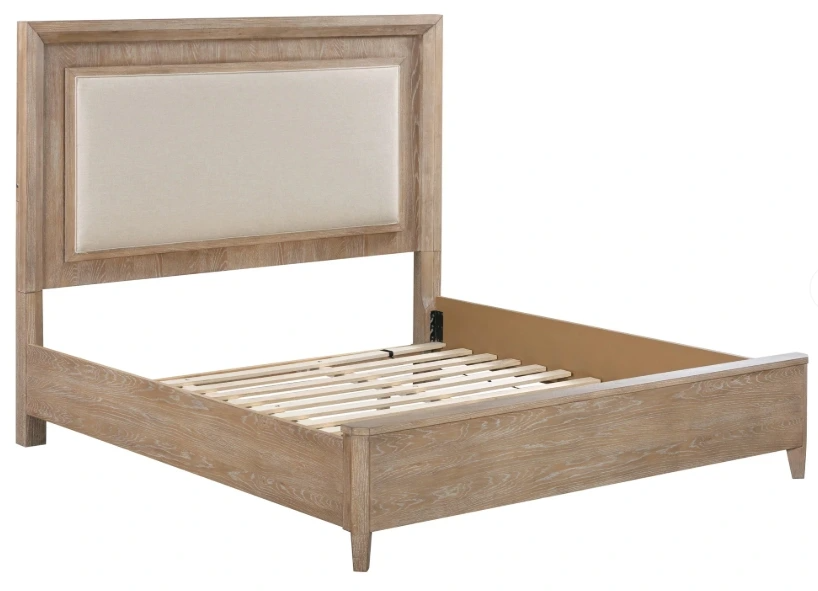 The Breckenridge bed blends classic craftsmanship with modern comfort. It is built from hardwood solids with oak veneers and features a warm Mocha Medium Brown finish highlighting the natural wood grain. The panel headboard showcases a floating upholstered insert, beautifully backlit with three-way dimmable lighting for a soft, ambient glow.Read More