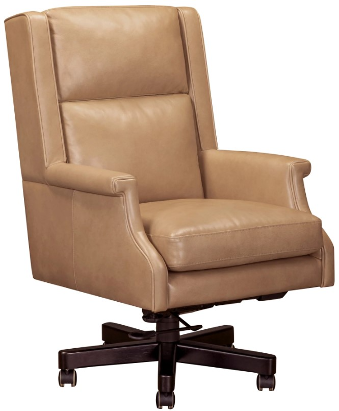Wrapped in custom-matched top-grain leather, this executive chair strikes a balance between luxury and performance, featuring a 360-degree swivel, smooth tilting recline, and air-lift height adjustment. Designed for all-day comfort with a structured bustle back, padded key arms with self-welting, and a removable 2.2-density foam seat cushion.Read More