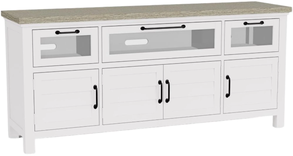 The Riverside Furniture Cora Entertainment Console showcases a Cloud base finish with a Fog finish top, creating a harmonious blend of colors. This console provides a stylish and functional solution for your entertainment needs, offering both storage space and a sleek surface for your devices.Read More