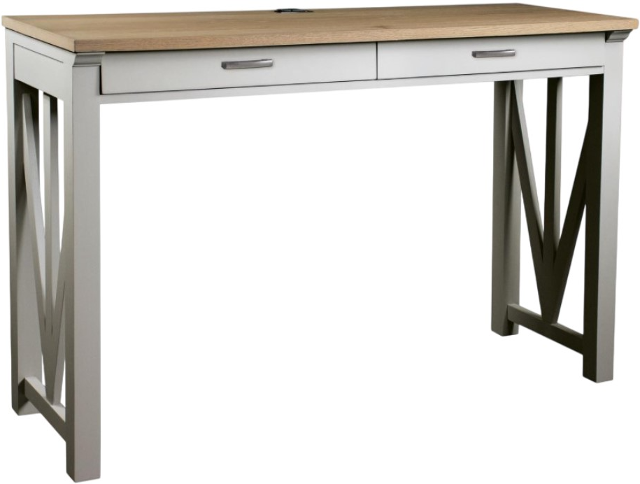 Upgrade your workspace with this desk from the Osborne Collection, boasting a rich Gray Skies frame and a Timeless Oak top finish for a touch of timeless elegance. Crafted with precision, this desk features two drawers meticulously constructed with dovetail joinery and ball-bearing extension guides, ensuring smooth operation and durability.Read More